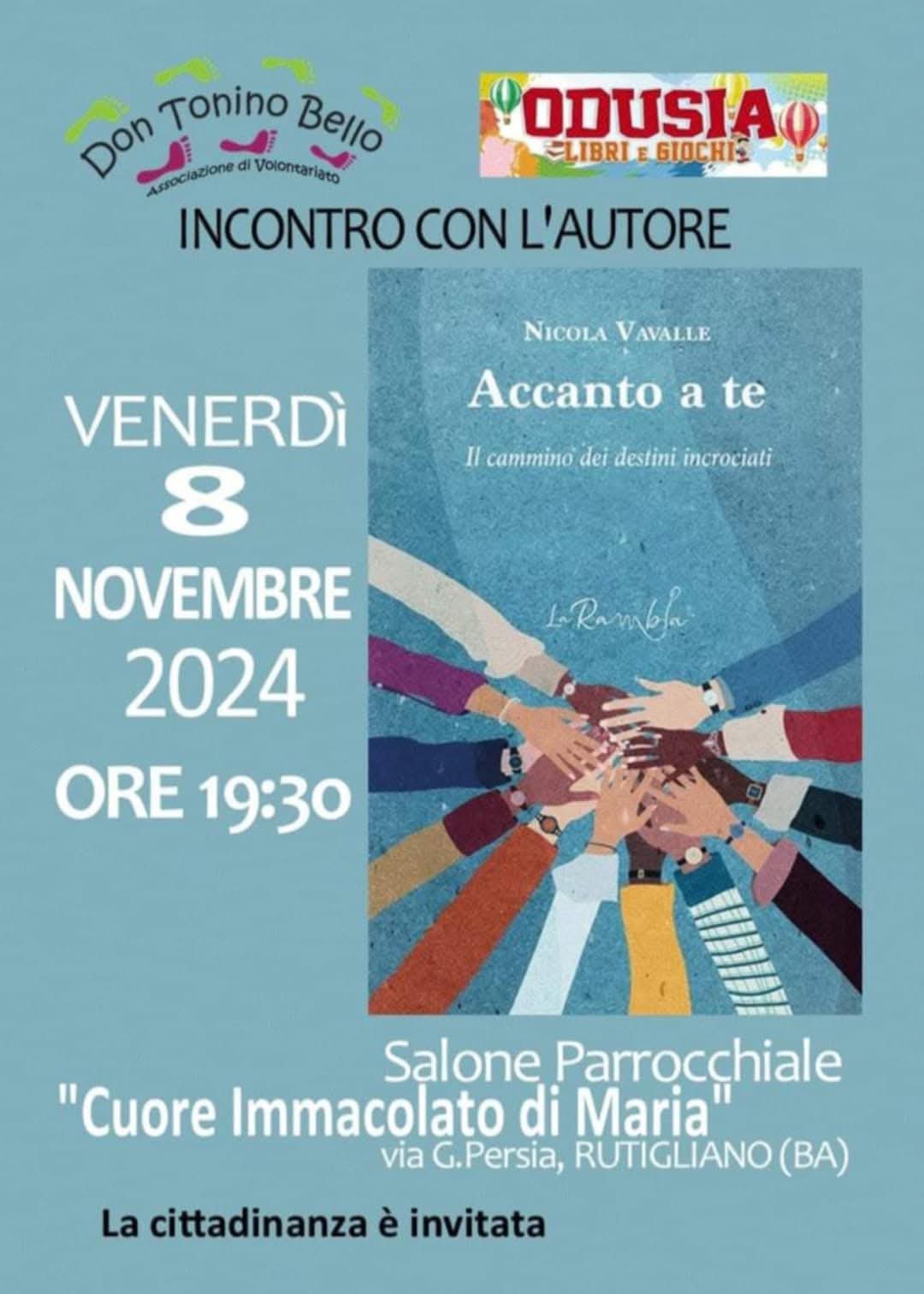 Ass. Don Tonino Bello Generale, News, Ultime Notizie Presentazione del libro “Accanto a te” Di Nicola Vavalle A cura dell’Associazione di Volontariato “Don Tonino Bello” in collaborazione con la Libreria & Giocattoleria ODUSIA 0